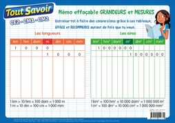 Poster plastifié avec des tableaux de conversion (mesures de longueur, de masse et de contenance). A utiliser avec un feutre effaçable pour s'entraîner à faire des conversions. A partir du CE2.